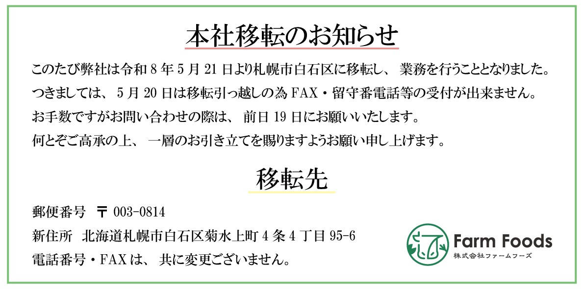 株式会社ファームフーズへのお問い合わせは ※現在正社員募集してません。 CONTACT-お問合せ